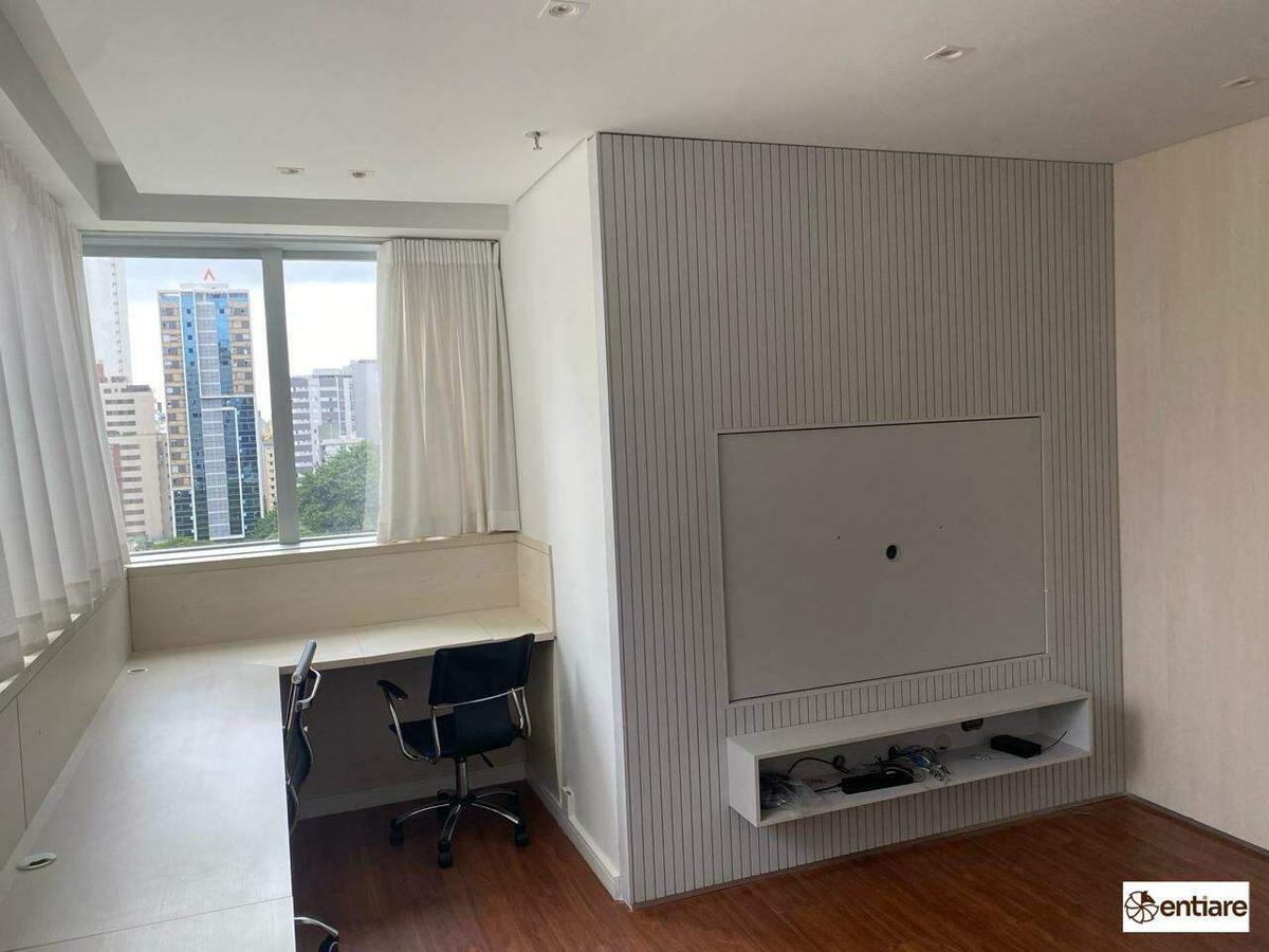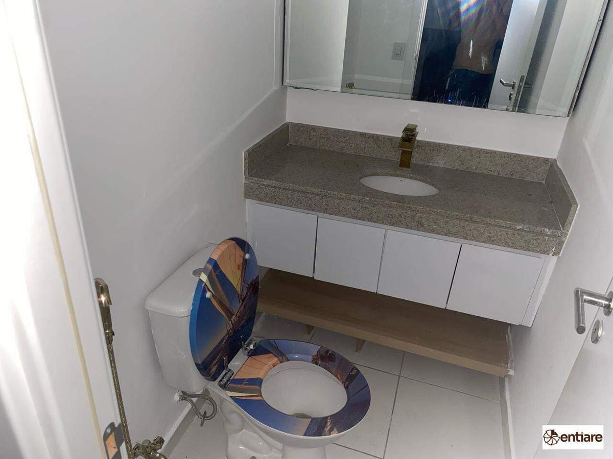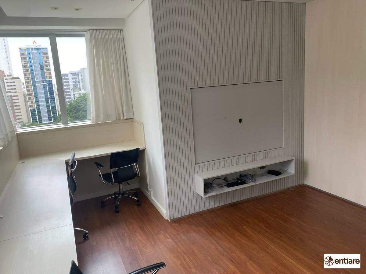 Sala comercial toda montada. O imóvel está em um condomínio super imponente com portaria 24 horas, hall social com porta automática, reconhecimento facial e 4 elevadores.