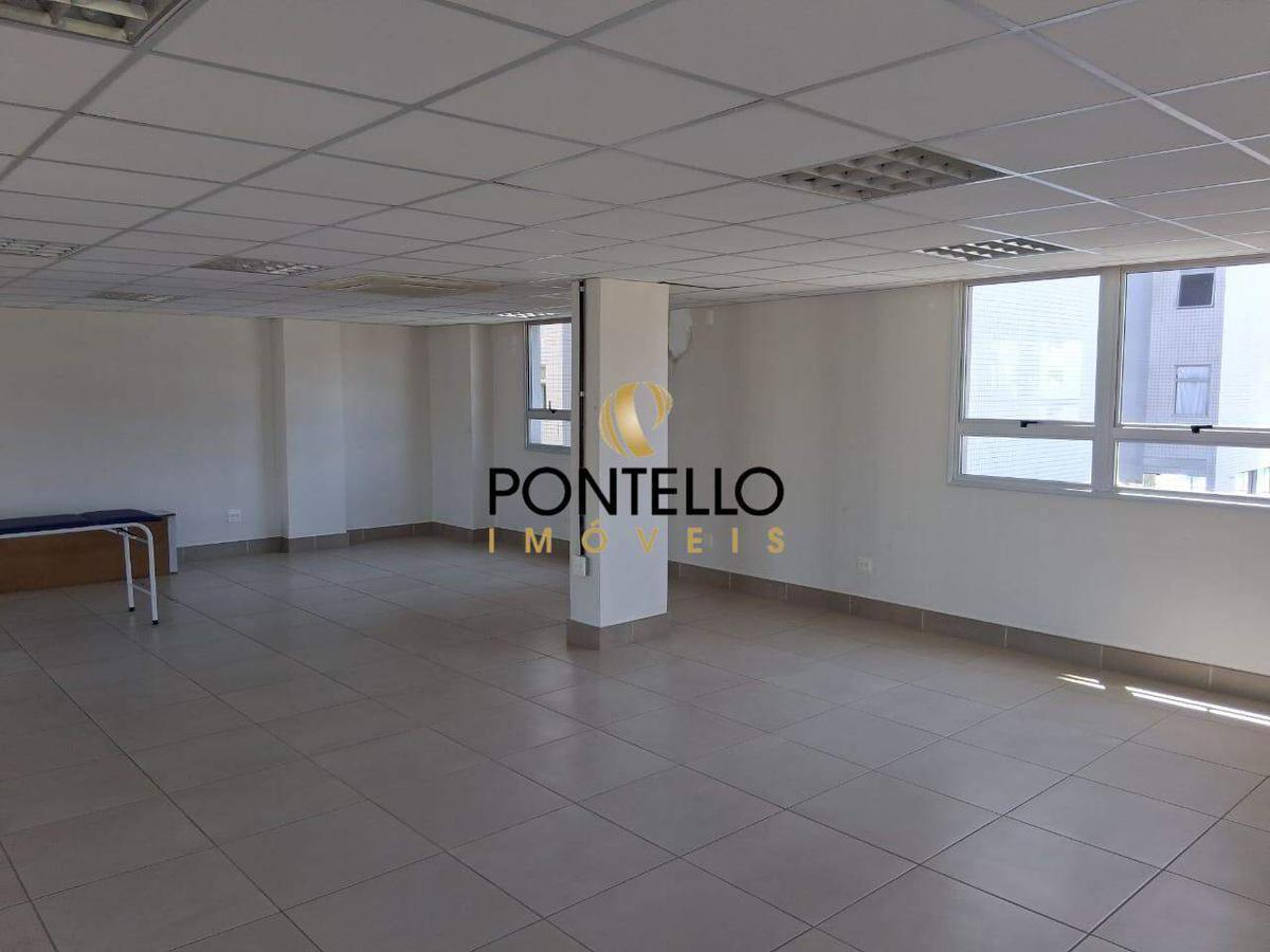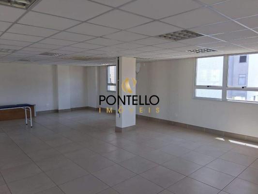 Excelente sala toda estruturada, pronta para entrar, com aproximadamente 134,63m² de vão livre, piso em porcelanato, aparelhos de ar condicionado, ótima iluminação, 3 banheiros compartilhados no hall do andar, sendo um com acessibilidade.