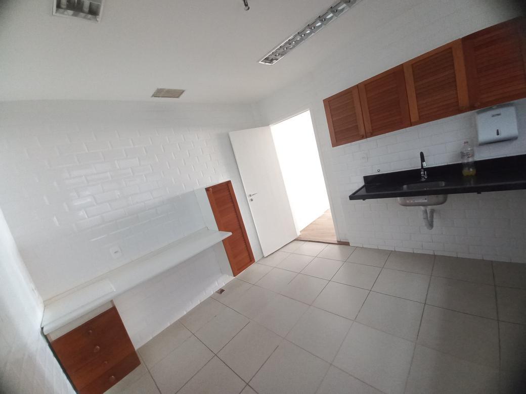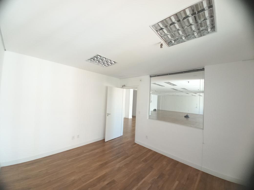 cinco salas integradas, com amplas janelas, andar alto, claro e arejado, piso laminado em madeira, 5 banheiros. 1 copa ampla com bancadas em granito, com estrutura de pia e armarios.