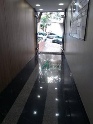 Conjunto de salas para locação e venda no bairro de Lourdes, sendo uma de frente e outra de fundos, clara e arejada, com área útil de 57,70m², porta de correr, bancada com pia, piso laminado de madeira, dois banheiros revestido em formica, com piso em cerâmica,