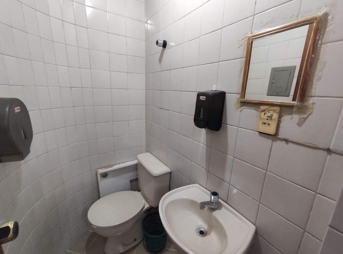 Banheiro com piso em cerâmica.