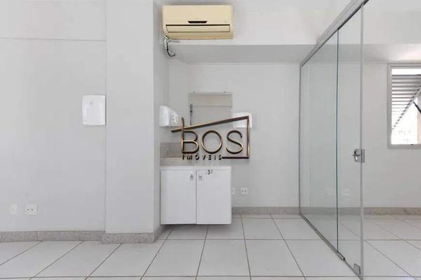 Sala comercial com 25,45 m², localizada em um prédio moderno e elegante, totalmente revestida em vidro, que proporciona um ambiente agradável e sofisticado.