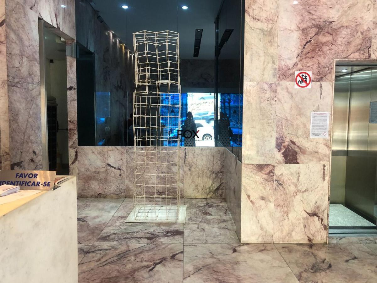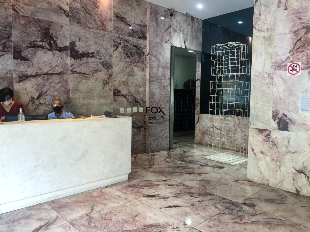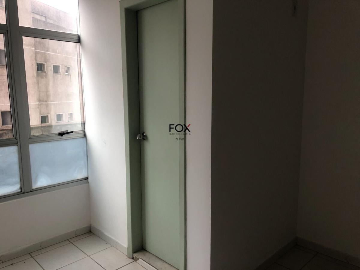 Sala com 45,29m², 1º andar, fundos, bem arejada e iluminada, piso em cerâmica bege, muito conservado, janela ampla. banheiro com cerâmica bege e janela ampla.