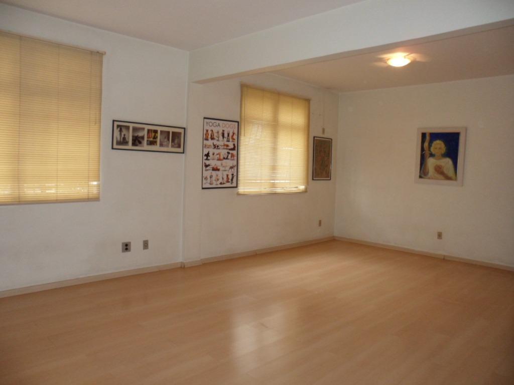 Sala 101: com 28m² clara e espaçosa, c/1 banho, piso laminado claro, sol da manhã