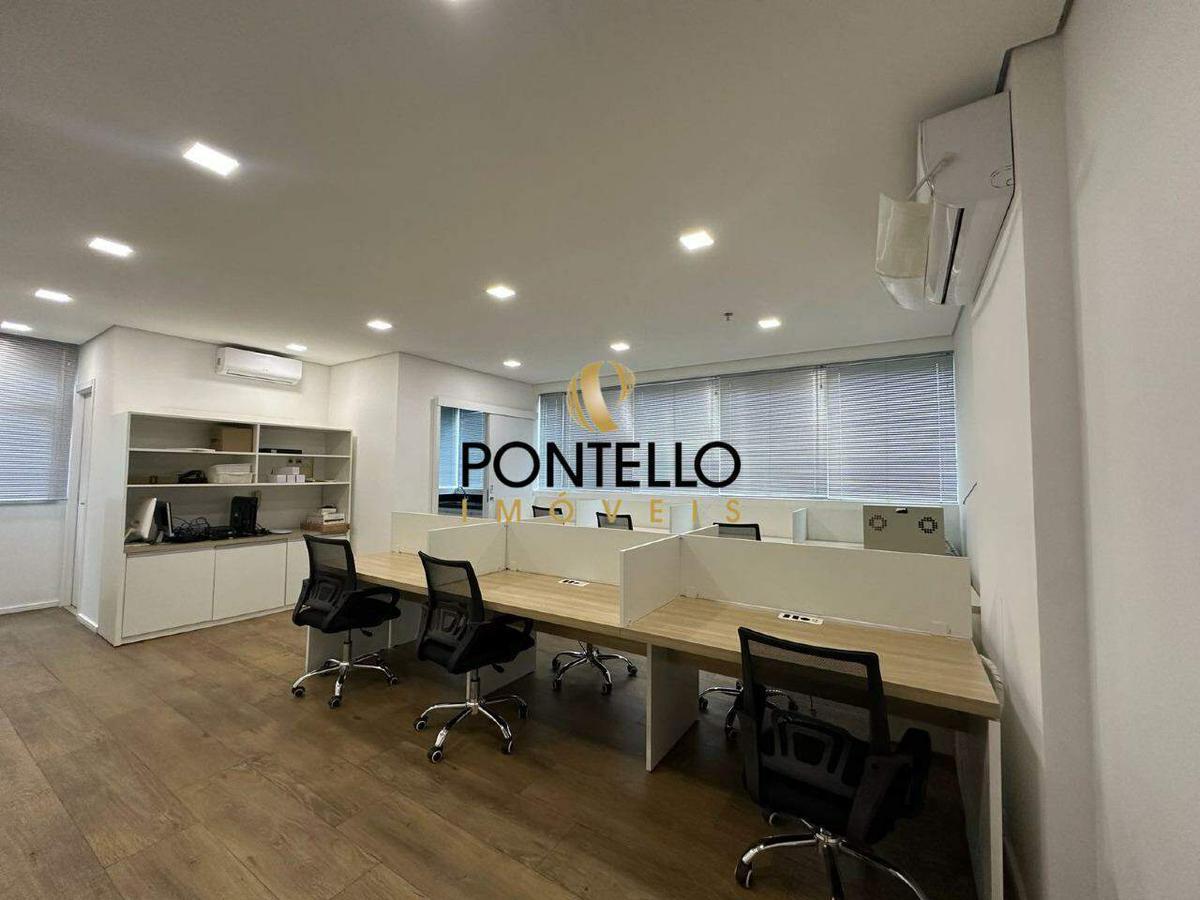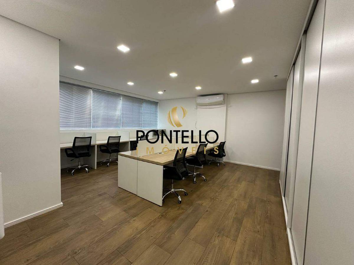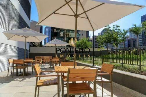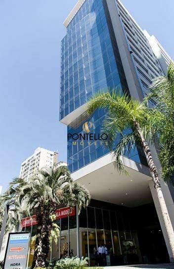 Sala comercial de 45,03m² com lavabo, área para copa e 1 vaga de garagem coberta sob pilotis.