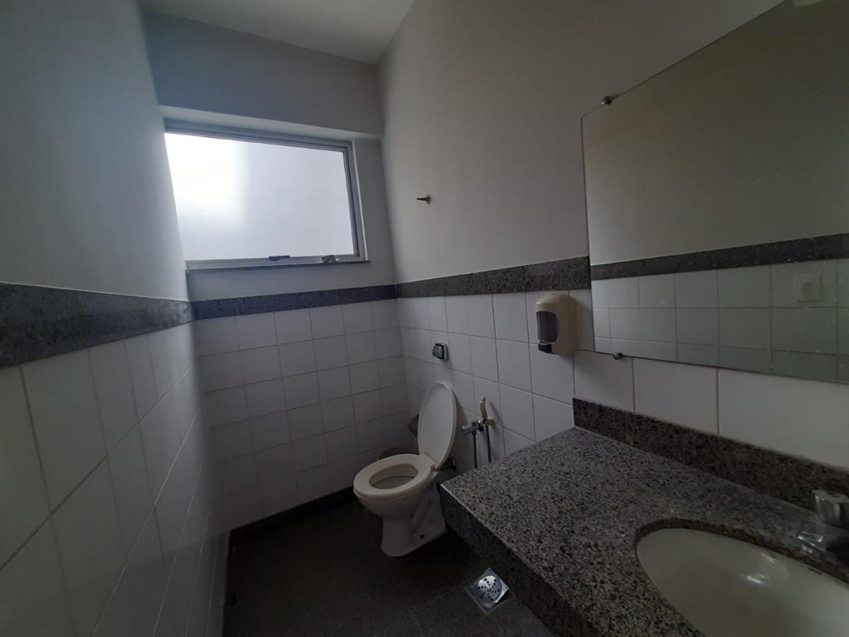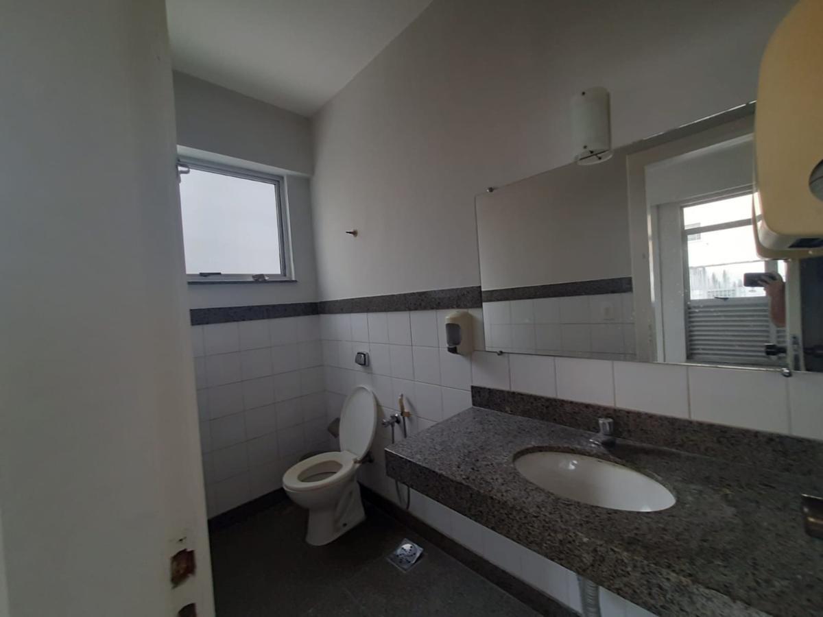 Sala ampla na Avenida do Contorno conta com banheiro com armários.