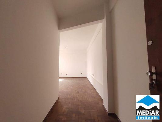 Sala de aproximadamente 33m2, com um banheiro, piso em taco, janelas em alumínio, de frente para a rua do Ouro.