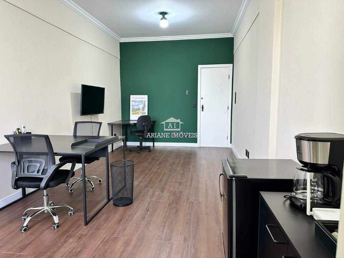 A Sala reformada localizada no Edifício Saint Hilaire, no bairro Vale do Sereno em Nova Lima, possui área privativa de 25,42 m². O espaço conta com piso vinílico de qualidade, teto com sanca em gesso e luminárias, paredes em alvenaria revestidas com tinta látex e janelas em alumínio, além de um lavabo com piso cerâmico e revestimento cerâmico nas paredes até 1,50 m de altura.